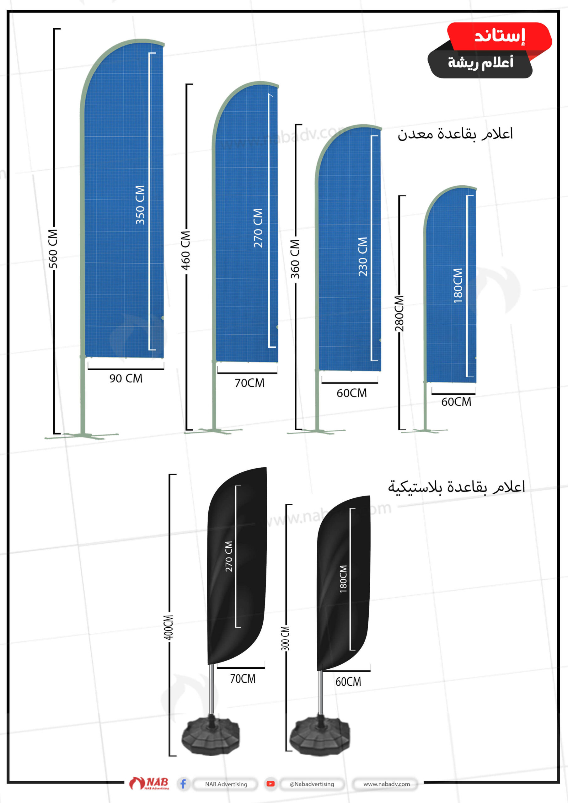 *اعلام الريشه 560سم بدون طباعه 4.650 كيلو جرام والاستاند بالطباعه 5.650 كيلو جرام .